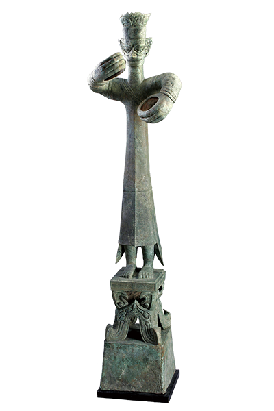 因为时间原因,铜立人像的具体铸造过程我们已不得而知,但在中国出土的商周文物中它可以称作独一无二,同期的西方文化还没有出现形体这么高大、制作这么精美的青铜人像。