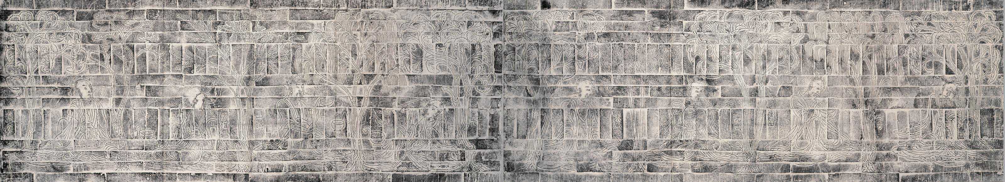 竹林七贤砖印模画包括了绘画和制作壁画一套程序。据科考人员推测,壁画在印制母本时应采用了木模砖印法。