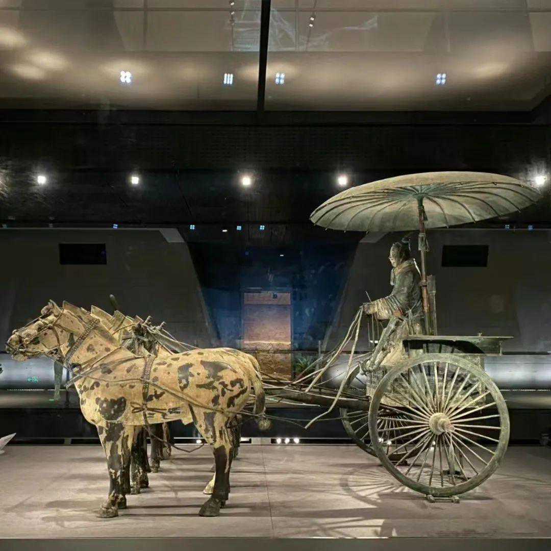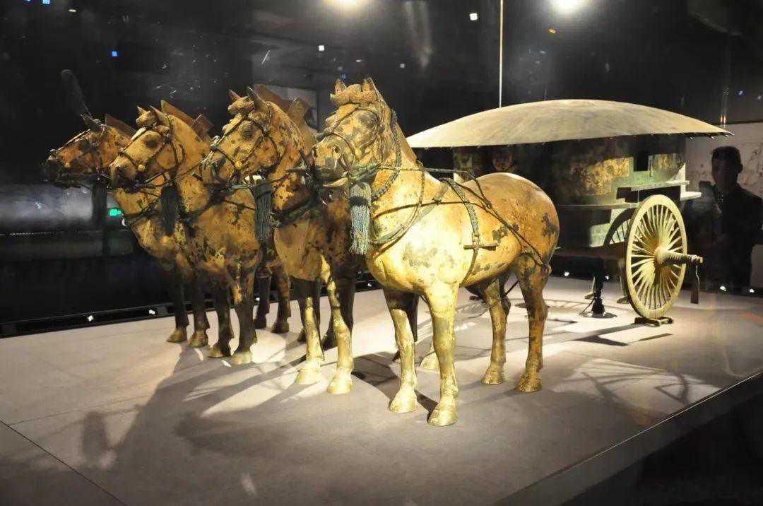 铜车马是迄今为止最大的青铜材质铸造的车马出土文物,总重量超过1200千克。虽然秦陵铜车马在秦陵地下埋了2200多年,但至今各种链条灵活可用,车门窗户开闭自如,牵动辕衡,带动轮轴转动,还能够载舆行驶。