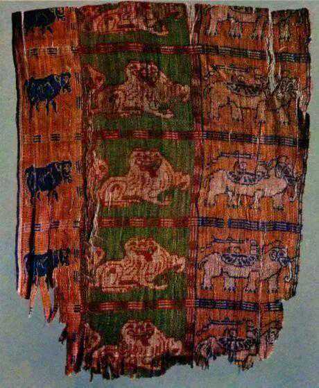 平纹和斜纹织物组织是毛织物中出现最早的组织结构。对人兽树纹罽袍是迄今罕见的双层组织、重纬组织。