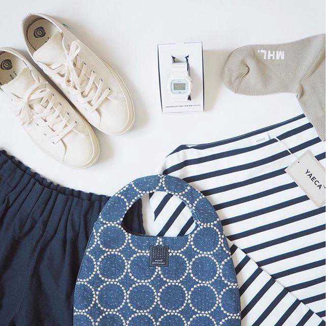 要说跟这种白布鞋最登对的单品,应该是中学校服,但现在已经用不上了,所以紧跟其后的就是基础款单品,比如说条纹tee。▼