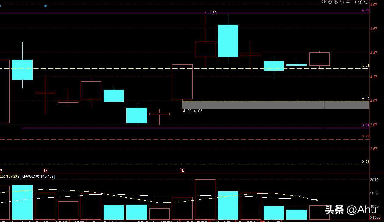 5、若收在4.80上方,则符合预期,近期有上攻上方跳空压力的需求,若收在4.80下方,则近期有震荡调整的需求