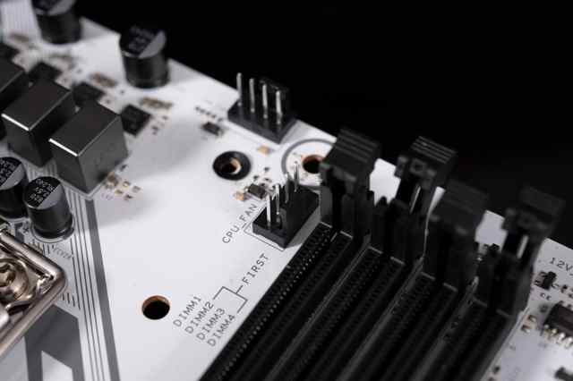 除了供电电路处有VRM散热装甲外,像是接口、PCH南桥等区域也是堆料十足,大面积的银色散热装甲搭上白色的PCB主板宛如一艘驰骋海疆的战列舰破浪前行。