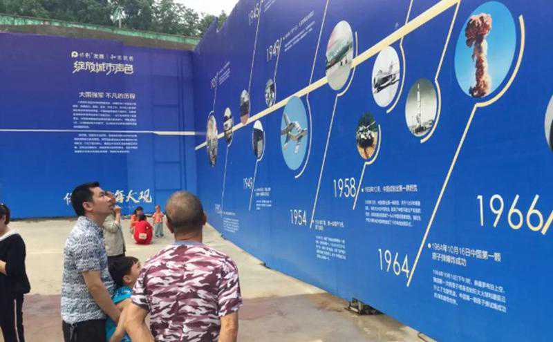 家长带着孩子带国防科普墙前了解我国航空发展史。