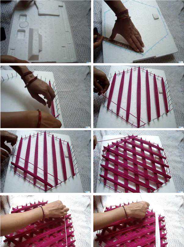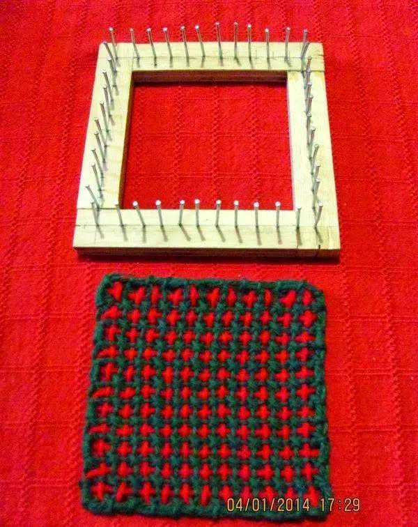 如果制作的作品不需要很大,如编一些小杯垫餐垫一类,用一个相框或小木框就可以完成。