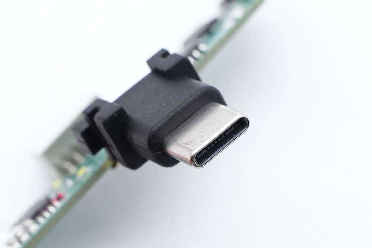 USB-C母座采用过孔焊接固定,黑色胶芯不露铜。