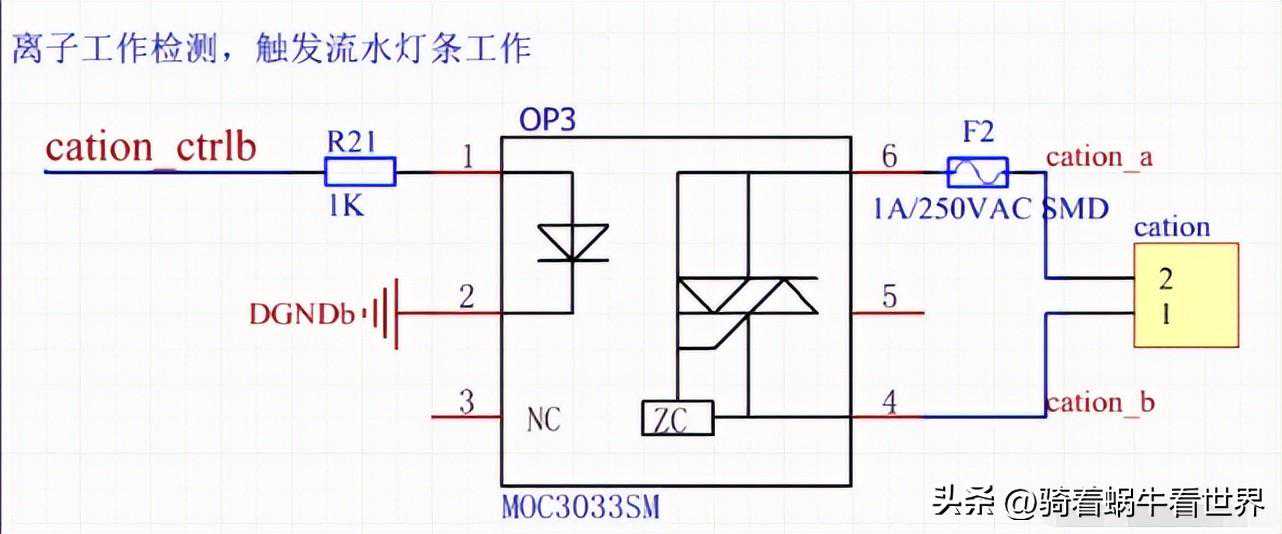 这是一个利用过零光耦内部的双向可控硅来控制负离子发生器的电路,由于负离子发生器工作电流很小,所以可以直接这样使用。