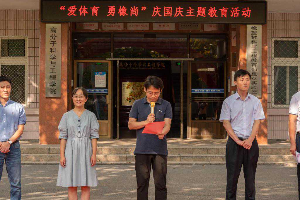 为了进一步加强爱国主义教育,引领青年大学树立朝气蓬勃、向上向善的“橡尚”理念,同时在全院中营造“爱体育,兴科大”的氛围,10月1日下午,青岛科技大学高分子科学与工程学院在高分子学院楼前举办“爱体育·勇橡尚”庆国庆主题教育活动。高分子科学与工程学院党政领导与200余名假期留校学生代表一起用体育的方式同庆国庆。
