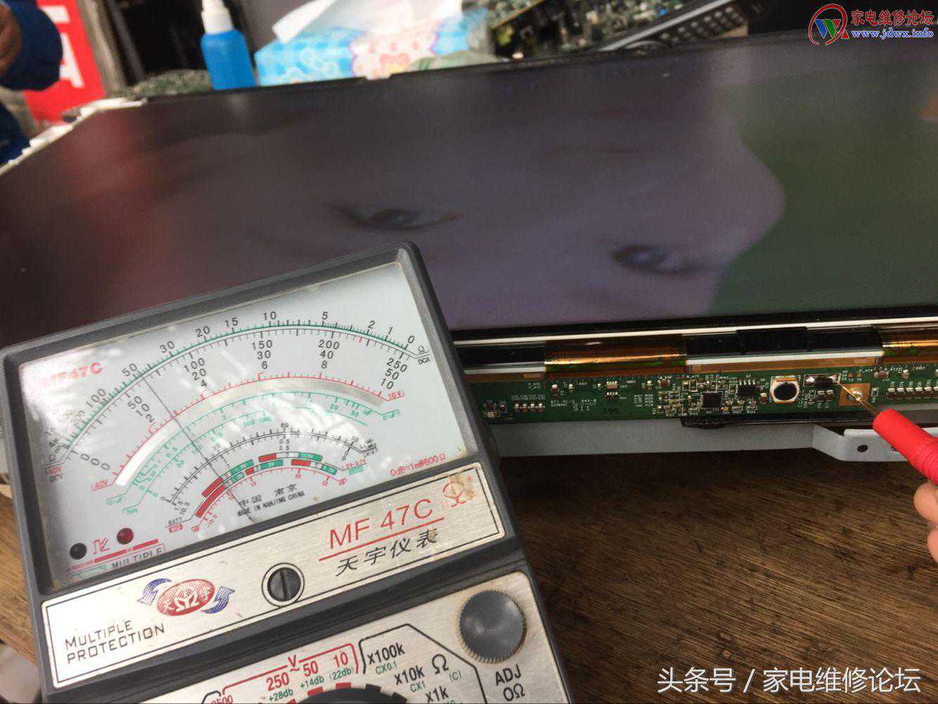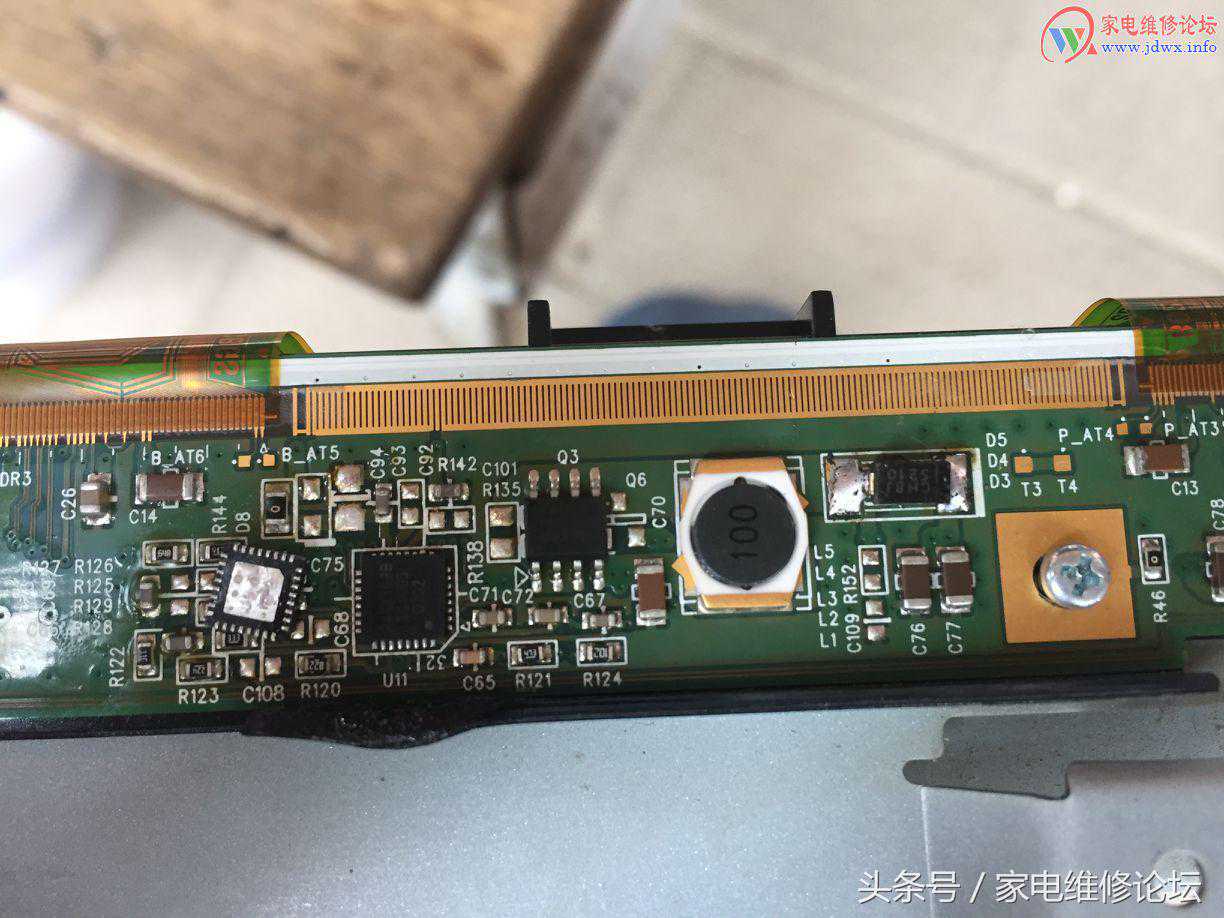 大致与用户说好维修费用等等,动手拆机,上电测试电压!上屏电压正常主板上屏驱动信号电压正常排除主板故障锁定在逻辑板