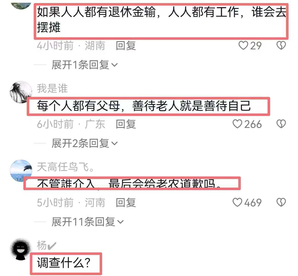 网友们都为老人谋不平,他被生活所迫已经很苦了,努力讨生活却又被执法部门如此对待,网友表示,比起摆摊影响市容,光天化日之下打老人才是真正的影响市容,希望能还老人一个公道,妥善处理安置老人。