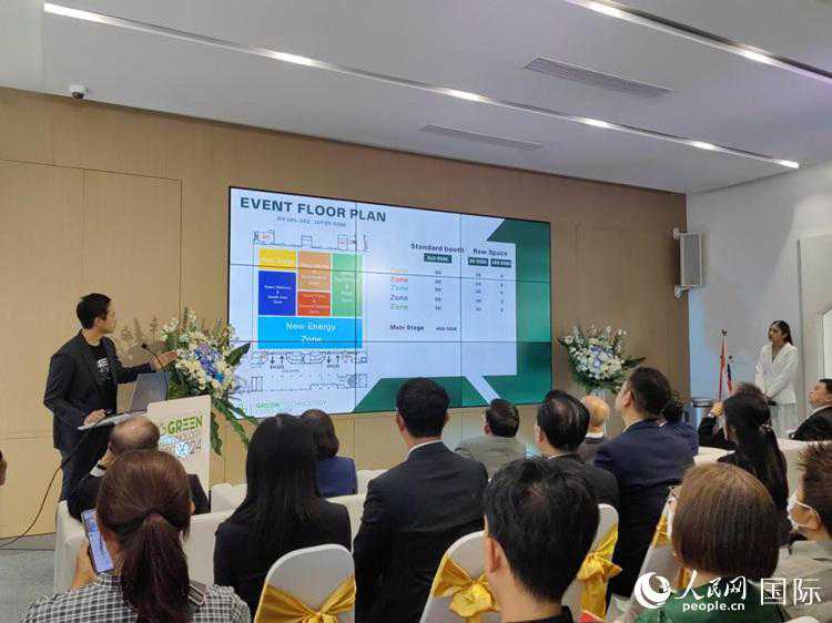 承办单位在发布会上介绍2024泰国绿色科技展览会的布展招展情况。人民网记者杨一摄