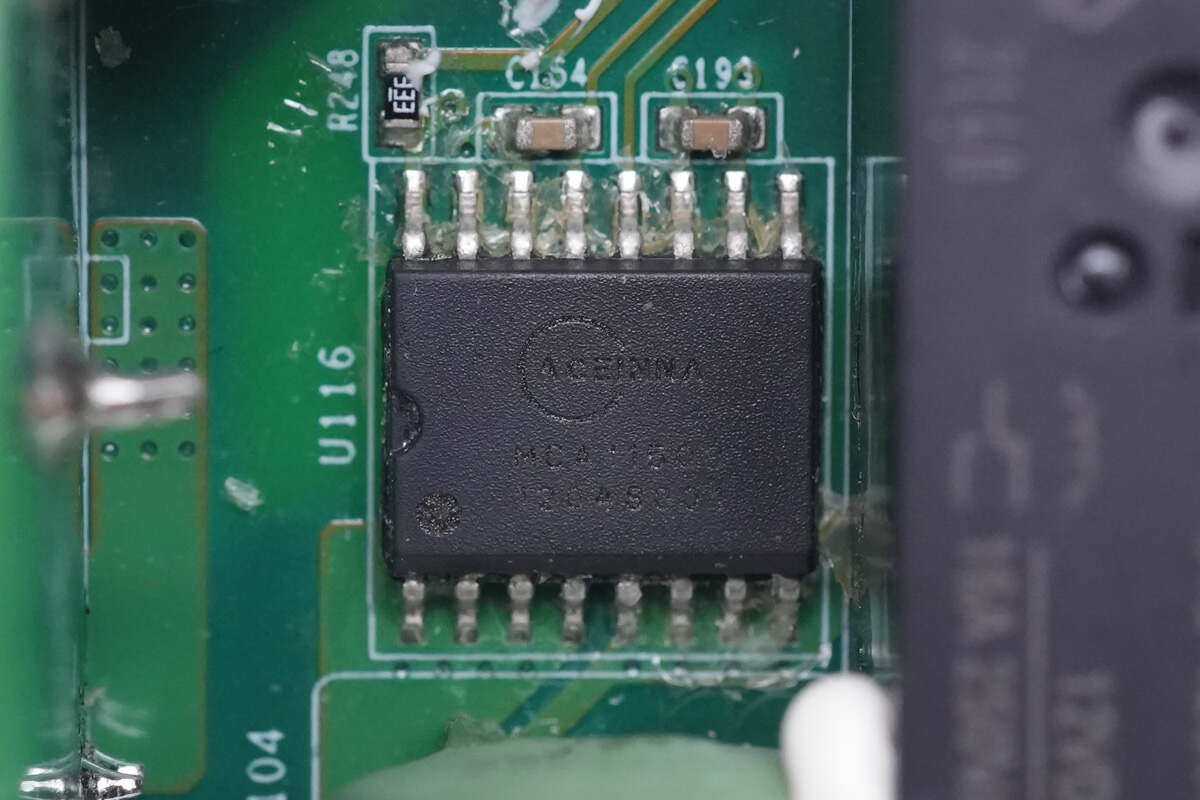 电流传感器芯片来自ACEINNA新纳,丝印MCA11503,型号MCA1101-50-3,是一颗50A量程,3.3V供电的隔离电流传感器,采用AMR各向异性磁阻技术。
