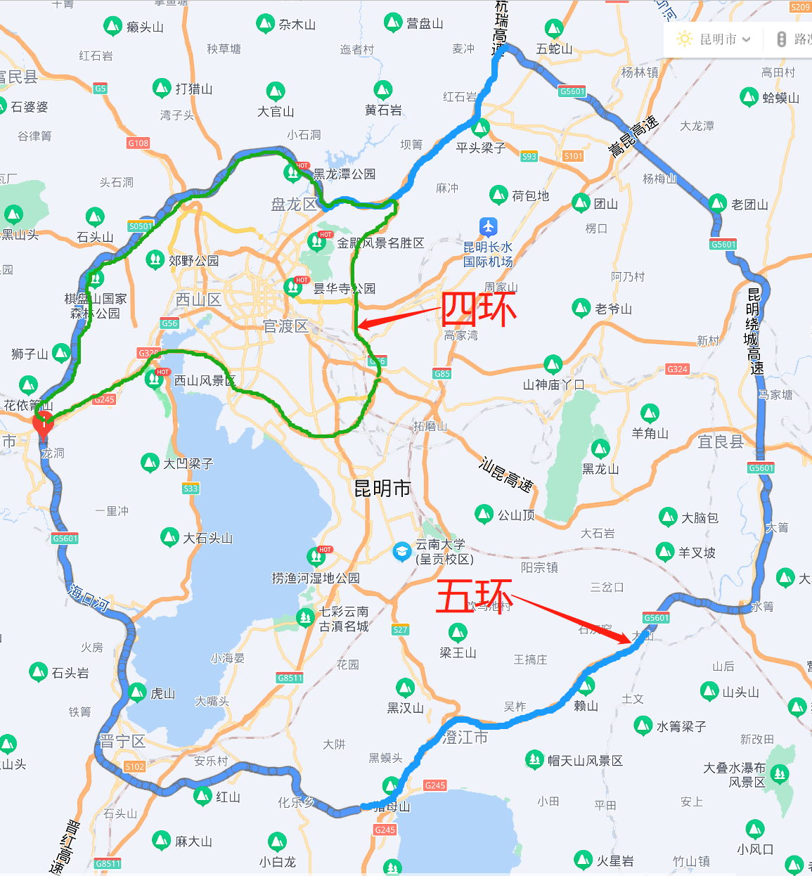 不知道大家有没有想到,昆明居然有五环,而且还是这么大一环!这下,不会再有了吧?!