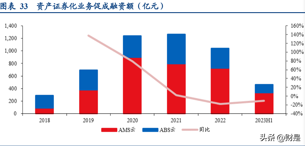 资产证券化业务包括核心企业云中的AMS云以及金融机构云中的ABS云,此产品为公司明星产品,2023年公司获中国资产证券化论坛年会“年度杰出机构”(2023H1,促成融资额共460.8亿元,同比-10.2%,占总促成融资额32.5%)。其中,AMS云促成融资额334.4亿元,同比-4.0%;ABS云促成融资额126.4亿元,同比-23.1%。