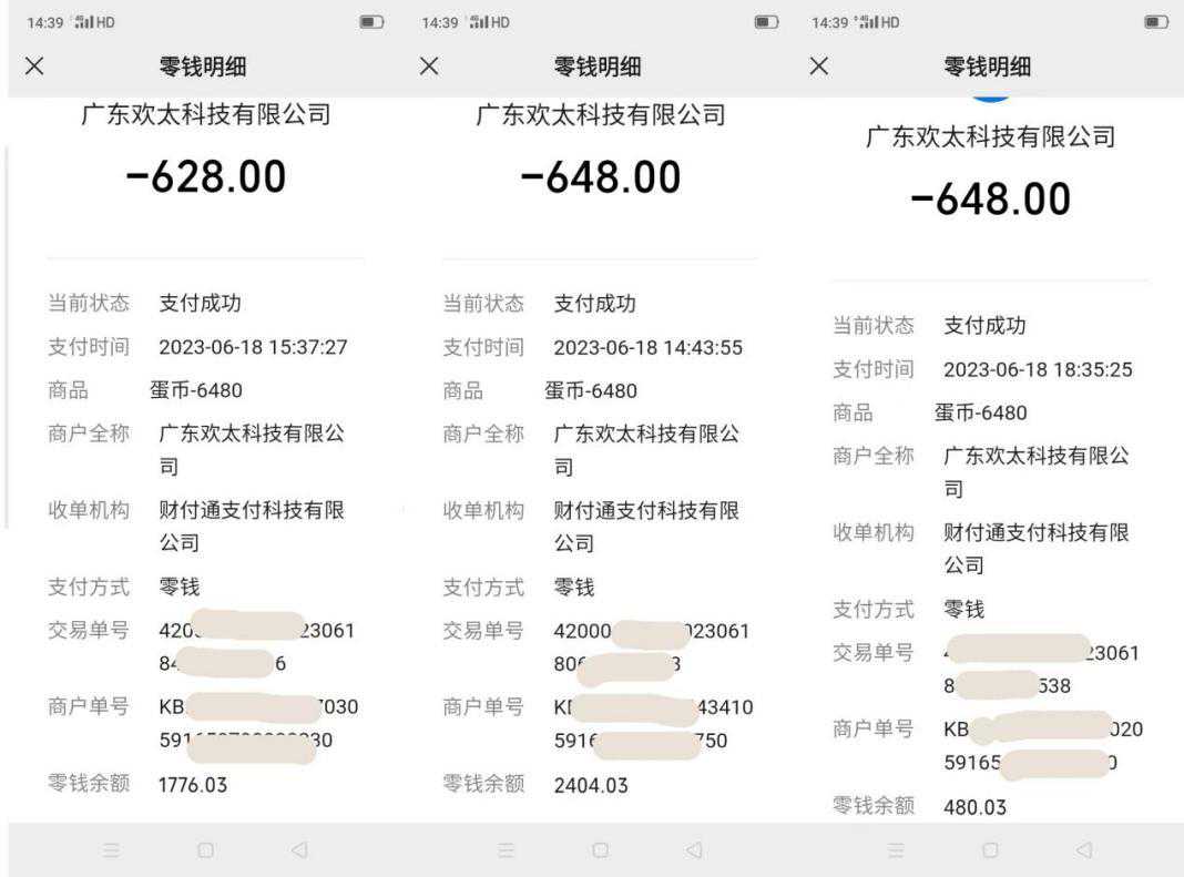与侄女沟通后,冯女士了解到,其在使用奶奶手机时为一款名为“蛋仔派对”的游戏进行了充值,充值账单显示金额收款方为广东欢太。“之前孩子需要上网课,平时都在卧室单独使用手机,所以奶奶并不知道她用手机向游戏进行充值的情况,且孩子也暗自记住了奶奶手机的微信支付密码,从而自行对游戏进行了充值。”