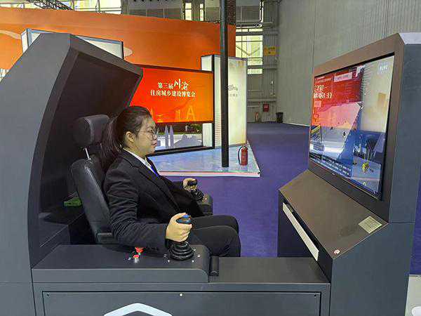 四川主题馆里展出了一个“建筑施工特种作业综合考试平台”。这个平台这用于培训塔吊、升降机等特种设备驾驶人员,让他们在一种仿真作业环境中应对突发情况、磨砺技能,以提升施工安全性。
