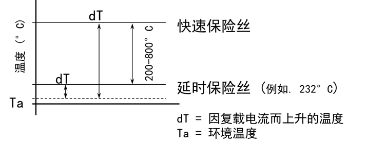 熔丝上的温度=环境温度(Ta)+因负载电流而上升的温度(dT)。