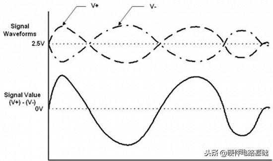应用到电学上,这两个跷跷板用一对标识为V+和V-的导线来表示。当V+V-时,信号定义成正极信号,当V+V-时,信号定义成负极信号。