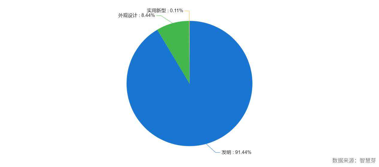 作为一家即将成立百年的跨国公司,除了众所周知的娱乐产业,迪士尼曾开拓了许多其他业务板块,积累了丰富的技术成果。根据智慧芽数据显示,截至最新,迪士尼及其关联公司在126个国家/地区中,共有6230件专利申请(详见图1),且从专利趋势看,迪士尼的专利申请较为平稳,近几年中每年都有超多300项专利申请。其中,发明专利占专利申请总数的91.44%(详见图2),反映了迪士尼在该技术领域中的创新程度较高。