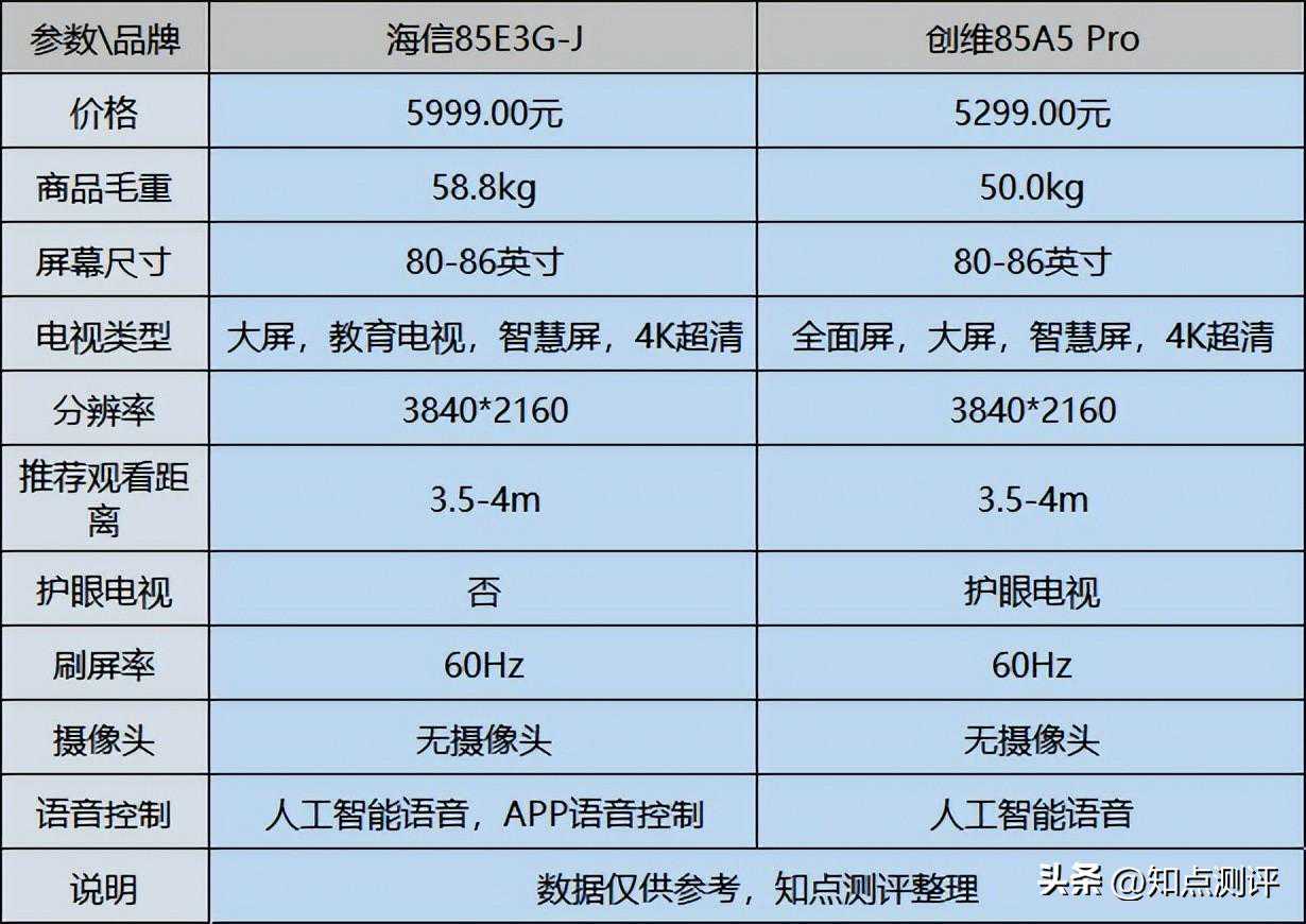 据笔者体验了解,通过对比海信电视85E3H和创维电视85A5Pro可以发现,海信电视机的色域高清、画质音质效果佳,而创维电视机的游戏体验好、画质引擎不俗。总结来看,如果是会议使用+日常家用看电影,选择这款海信电视机;要是喜欢玩游戏的朋友,可以直接选购这款创维电视机。接下来给大家掌握细节情况:
