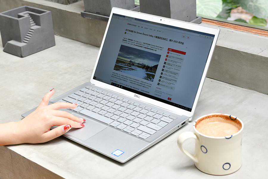 13.3英寸的笔记本电脑有着1.3kg的重量,最薄处仅有16.8mm,正好满足了我之前说的很多场景需求,即使还是女生,放在包里出门也并不会因为重量和大小弄得自己很狼狈。磨砂处理的机器表面配上银色的logo,戴尔的轻薄时尚产品确实在外观上没有让人失望过。