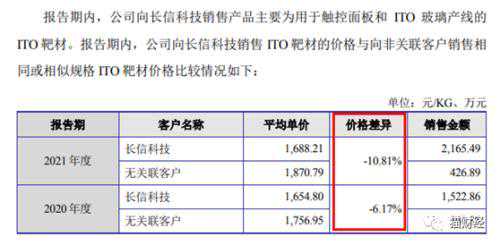 从销售价格上来看,映日科技对长信科技销售产品价格要低于对无关联客户的平均单价,在2021年度这个价格差异甚至超过10%。