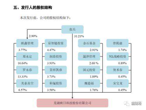 目前,映日科技的实际控制人张兵直接持有公司31.32%的股权,拥有公司34.98%的表决权。另外,公司股东还包括TCL战略投资、显智链投资、景祥凯睿、金石基金、国元投资等私募股权基金。上市后,张兵将持有该公司23.49%的股权,拥有26.24%的表决权。