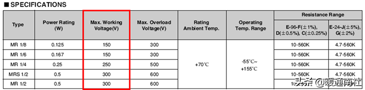 -电阻端子之间连续可以施加的电压(素子最高电压);