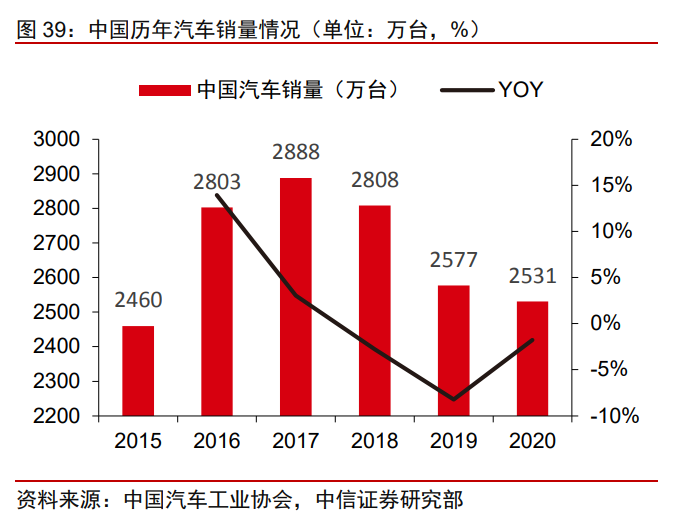 受益于产业链趋于成熟及需求上行,新能源汽车出货量高速增长。总量上看,近年来全球汽车出货量已进入稳定发展阶段,2015-2019年出货量约9000万台规模,2020年受疫情影响同比-17.4%至7680万台;结构上看,目前国内新能源车渗透率高于全球,我们认为随政策助推+成本下降,新能源车有望快速放量。据智研咨询援引EVSales数据,2020年全球新能源车销量为323万台(同比+46.6%),渗透率为4.2%;国内新能源车销量为136.7万台(同比+13.4%),渗透率为5.4%。随着全球各国政策驱动、行业技术进步、配套设施改善以及市场认可度提高,我们预计到2025年全球新能源汽车销量将达到2313万辆,2021-2025年CAGR达38%。