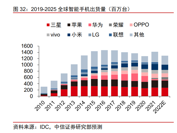 2、手机端传统业务:智能手机出货趋弱叠加多摄放缓,未来预计稳定增长