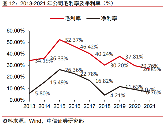 另一方面,A客户手机端产品(如连接器接口、摄像头支架、装饰圈等)开始迅速放量,此类产品工艺相对成熟,公司通过一定价格竞争优势切入,故毛利率相对较低。2019年,公司毛利率恢复至37.81%,主要是多摄、升降式摄像头趋势下智能手机摄像头支架等业务需求大幅增加,且毛利率有所回升所致。2020年,公司毛利率下降至29.76%,主要系在部分传统MIM业务上市场竞争对手的能力逐步靠近,竞争加剧所致。2021年毛利率进一步下行,则主要受安特信并表,终端业务拖累所致(终端业务毛利率仅6.56%)。