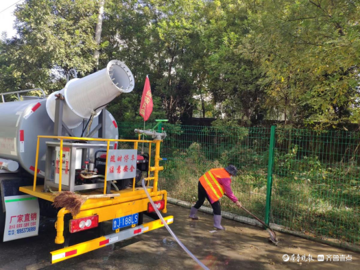 科学部署,日常作业与专项行动双管齐下,加强区域环境治理。根据各个季节气温特点,结合周边居民的出行习惯和道路清洁作业标准,综合采取延长洒水时间、雾炮作业高空抑尘等措施,进一步加大区域扬尘污染治理力度。对道路沿线的行道树、绿化带、路面实施立体式冲洗降尘,不断延伸洒水降尘的宽度和深度,有效降低扬尘污染。在专项道路清洁中,徐家楼街道以白峪店子小学为中心点,在傲来峰路首先开展道路深度清洗专项行动,通过使用多功能洗扫车、高压冲洗车和雾炮车等联合作业,先使用高压水炮冲洗道路,然后再人工清扫,确保全方位、全覆盖、无死角,抑制城市扬尘污染,提高空气质量。