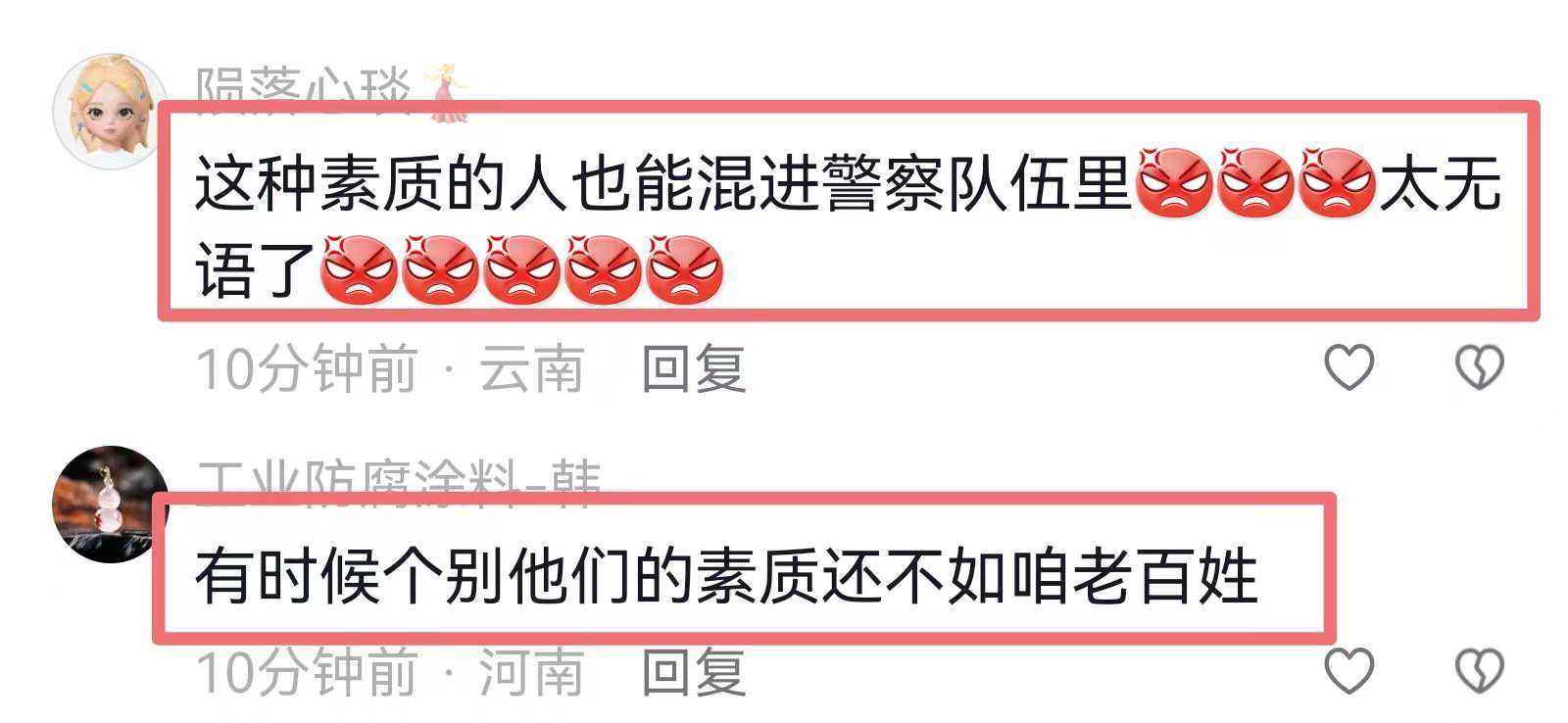 很多网友认为他们这个素质还不如老百姓,这样的素质不配当交警,不知道他们是如何混进警察队伍里的。