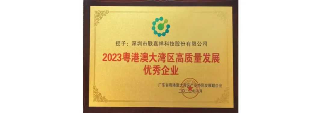 联嘉祥获2023粤港澳大湾区高质量发展优秀企业